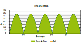 • Der Effektivwert, RMS (Root Mean Square), oder auch TRMS (True Root Mean Square) ist die Quadratwurzel aus dem Quotienten der quadrierten Messwerte und der Anzahl der Messwerte.