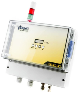 MICROX-OL (0...1000 ppm - 0...25 % - 0...100 %) Monitoring für den Sauerstoffgehalt in Versorgungsanlagen Messung mit Zirkonium und elektrochemischen Sensoren für alle erforderlichen Bereiche CO² Sensor für MAP Anwendungen verfügbar (Modified Atmosphere Produktion)